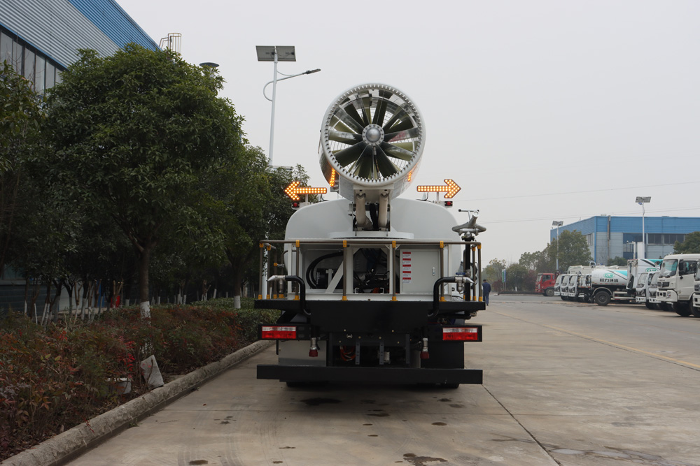 四、其他說明: 本車主要使用噴霧噴射霧化水,與空氣中細顆粒物結合,沉降至地面,可以減少 70%以上細顆粒物, 大幅提高空氣質量。可對道路、廣場、公園等處空氣抑塵、凈化空氣;對建筑物拆除爆破、粉料堆場、土 建施工、露天礦場等場地產生的大量粉塵進行噴淋抑制,從源頭減少空氣污染。本產品具有路面沖洗、灑 水降塵、揚塵抑制等多種功能,是各地進行環衛保潔、空氣治理的專用車輛。