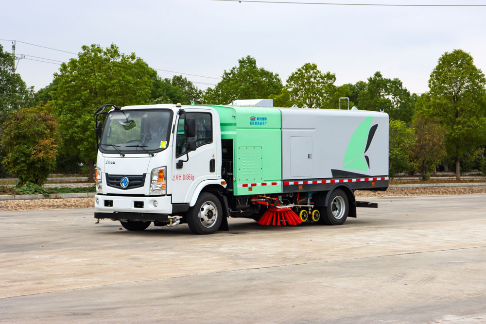 該車特點 東風華神純電動洗掃車是我公司研制開發的集掃路車和高壓清洗車功能于一體 的高效環衛車。整車動力強勁,結構先進,掃、吸、洗相結合,作業效果好。一次作業,三重 收獲,道路清掃、路面高壓清洗、垃圾污水收集一次完成,此洗掃功能解決了不可視垃圾清理 的作業難題,從源頭上遏制道路揚塵,還原路面本色。