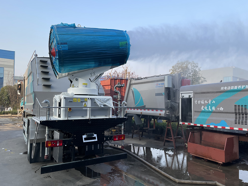 5. 霧炮機(jī)組直接由底盤電池提供動(dòng)力,沒有副發(fā)電機(jī)組,比傳統(tǒng)柴油車更節(jié)能,大大降低噪音污染。