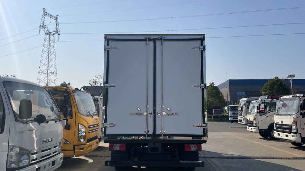 江鈴凱運4米冷藏車可在廂體頂部選裝軌道肉鉤、及在廂體底部選裝T型通風槽