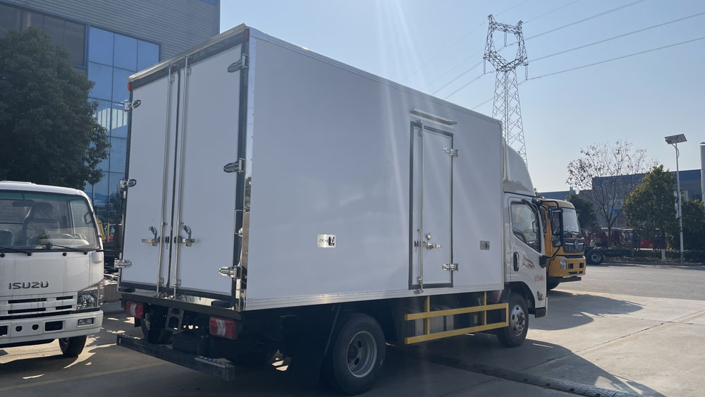四、選裝配置:可選裝導軌肉鉤、T型通風槽、右側開側門、溫度實時監控帶打印裝置,運輸海鮮廂體內部須選用不銹鋼材質,可選裝外接電源220V-380V(車輛熄火后,通過外接電源進行制冷)。
