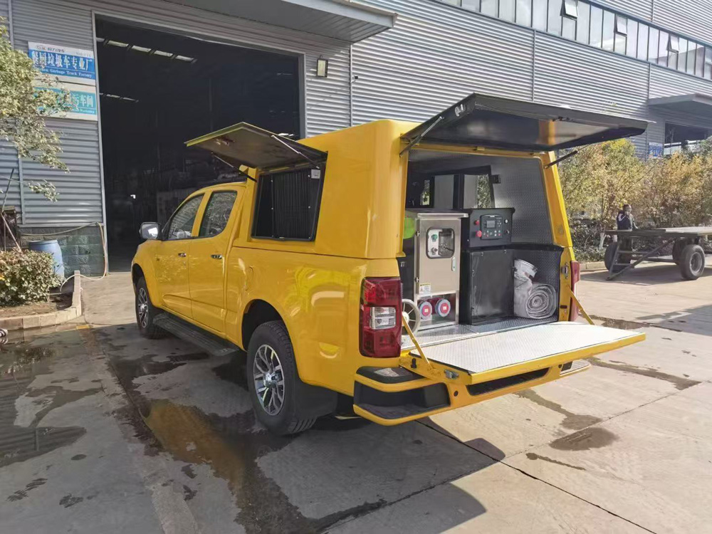 一、底盤配置: 采用慶鈴QL1030CZHW2 車身,配置玉柴4KH1CT6H1發動機105/143馬力,國六排放標準,軸距3406(mm),整備質量2.97噸,額定載質量0噸,五擋變速箱,帶動力轉向,帶原廠空調,該車上藍牌,城區道路不限行。